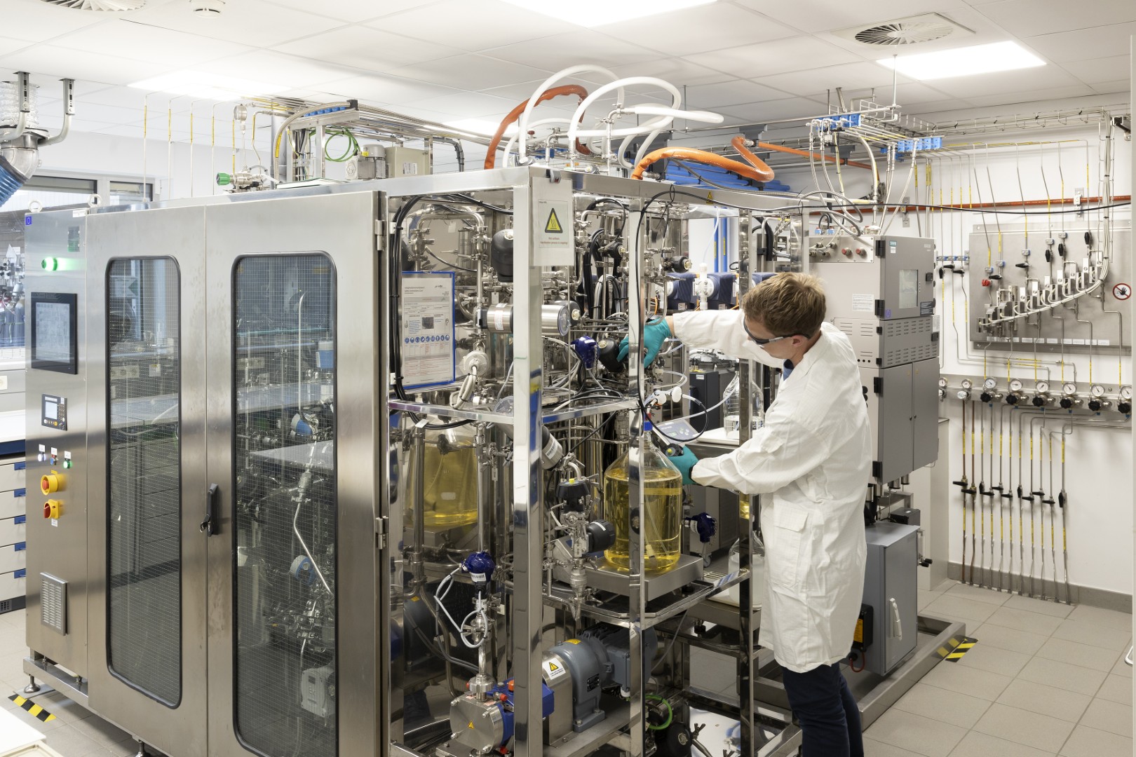 Onze expertise omvat het omzetten van organische grondstoffen in oplosmiddelen, organische zuren, single-cell-eiwitten, biopolymeren en meer. We passen zowel batch- als continue fermentatieprocessen toe en intensiveren deze verder met membraanbioreactoren (MBR) en in-situ product recovery (ISPR).